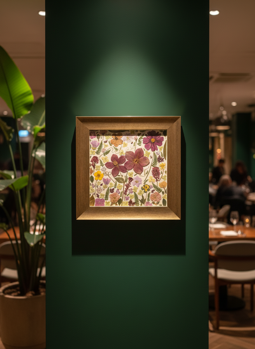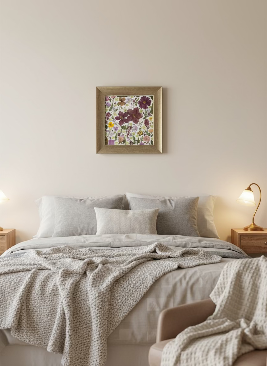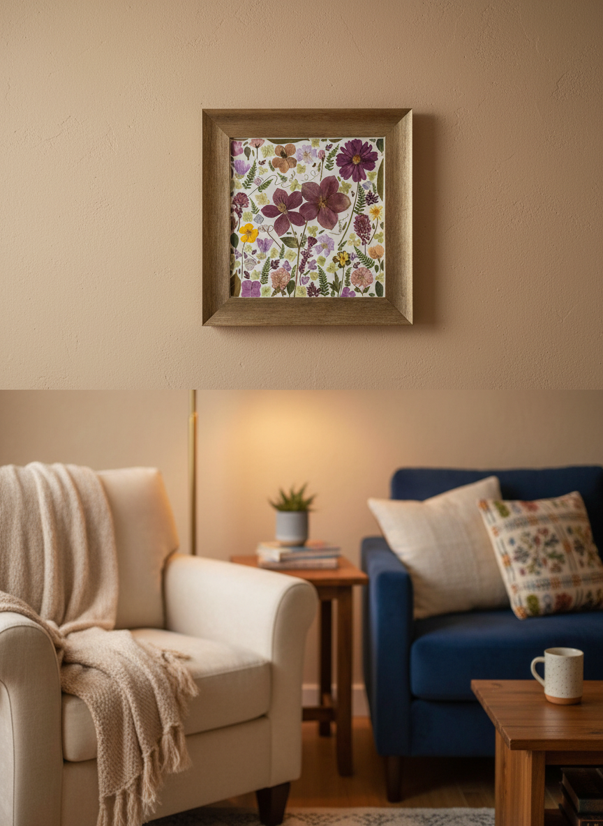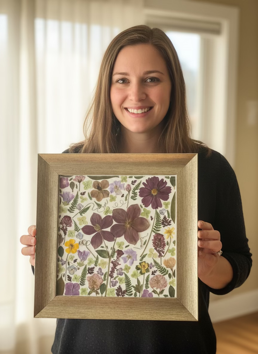 Celebrate the bond of three with this charming pressed floral artwork featuring one delicate Cosmos bloom and two elegant Helleborus flowers. Each petal is carefully preserved to capture a moment of friendship frozen in time.